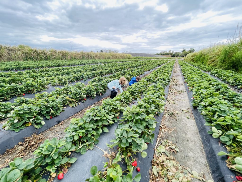 Mangos, Avocados, Watermelon, Potatoes, Sweet Corn, Oranges, Tomatoes, Cantaloupe, Papaya, Carambola (Starfruit), Peanuts and Mushrooms are just some “in season” items you may be able to pick at a farm when you visit from June through August.