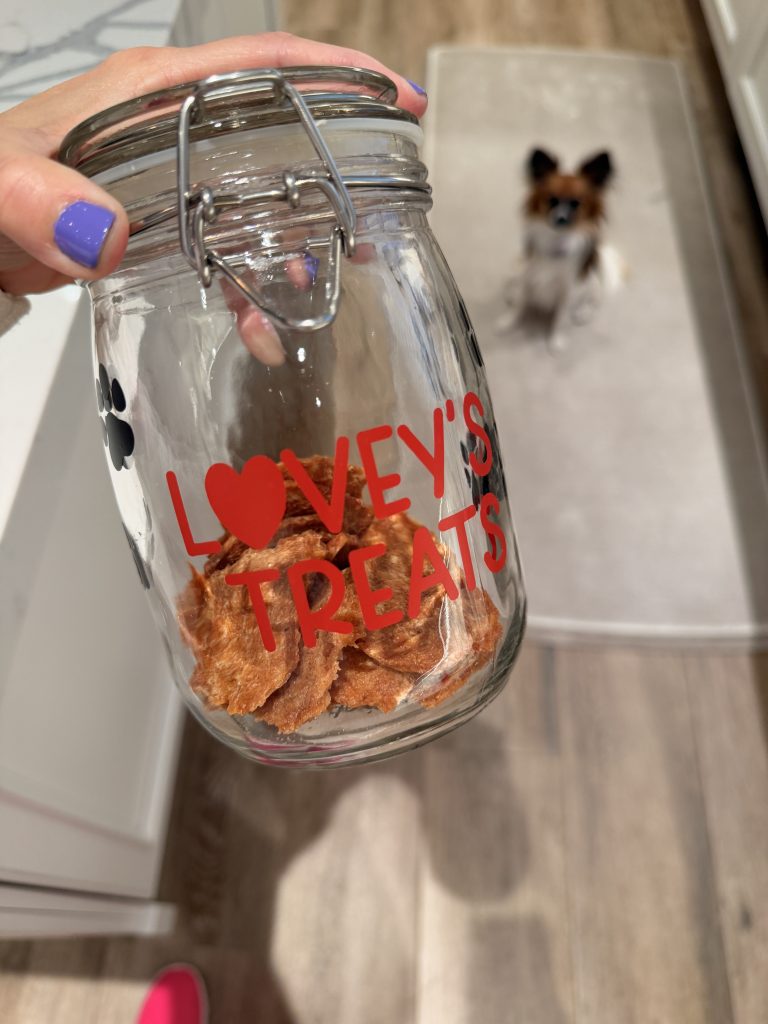 *ORGANIZATION TIP* If you like something you made and want to make more you can do it all in one shot. For example I made a dog treat container and it came out so good that I wanted to give them as gifts for Valentine’s Day. So I edited the template to add in all of the labels to do at one time instead of multiple cuttings which can end up wasting materials.